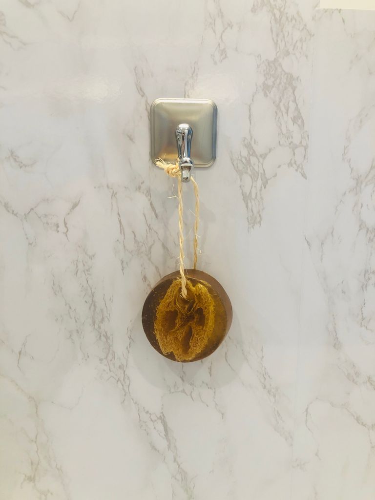 -LOOFAH soap on a rope, the natural loofah helps gently exfoliate.